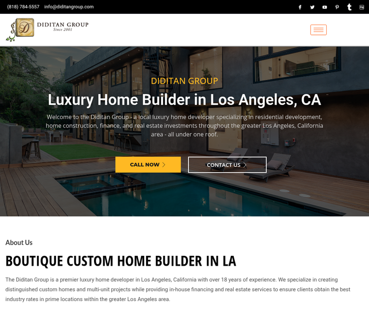 The Diditan Group is a premier luxury home builder and developer with over 18 years of experience specializing in distinguished custom homes and multi-unit projects throughout the greater Los Angeles area. Founded by Arie Abekasis, they provide comprehensive services including in-house financing and real estate services to ensure clients obtain the best industry rates in prime locations, with a mission to develop strong relationships and build exceptional architectural masterpieces while understanding each client's unique lifestyle needs.