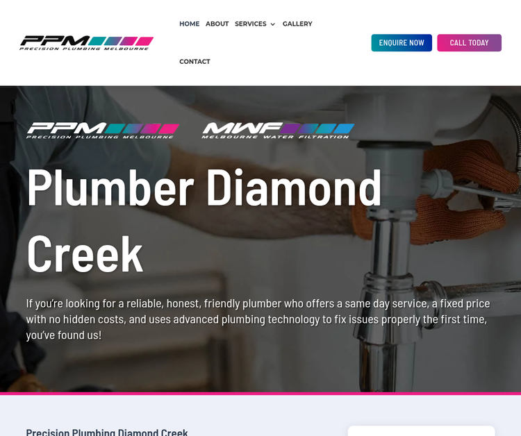 At Precision Plumbing, we offer all aspects of plumbing including general plumbing, burst water pipes, fixing blocked drains, hot water unit installations & repairs, drainage and a 24 hour, 7 day a week emergency plumbing service.