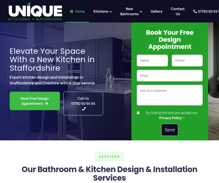 We bring 25 years of combined kitchen and bathroom design and installation experience ideal to your home. Top quality, made to measure kitchens and bathrooms in Staffordshire and Cheshire. We are kitchen and bathroom specialists - improve your kitchen for less, with thousands of doors and worktops to pick from. Our design specialists are prepared to help identify the products and design that work best for our customers. We work within the colours and lighting of your home to meet and go beyond your expectations. With more than 2,400 style & colour combinations we are your best choice for a local bespoke kitchen & bathroom company. We Have NO Hidden Charges, Commissions or Extras.