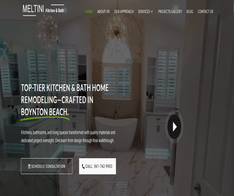 MELTINI Kitchen & Bath is a home remodeling contractor in Boynton Beach serving Palm Beach County families for over 20 years. We specialize in kitchen remodeling, bathroom remodeling, custom closets, custom cabinets, and built-ins—delivering complete renovations from design through installation. Our family-owned team handles every detail: cabinetry, countertops, tile, showers, vanities, and storage solutions. We guide you through material selection, create a plan that fits your style and budget, then execute with meticulous craftsmanship. A+ BBB rated with consistently high Google reviews. Serving Boynton Beach, Lake Worth, Wellington, Delray Beach, Boca Raton, and West Palm Beach. Schedule your free in-home consultation today.