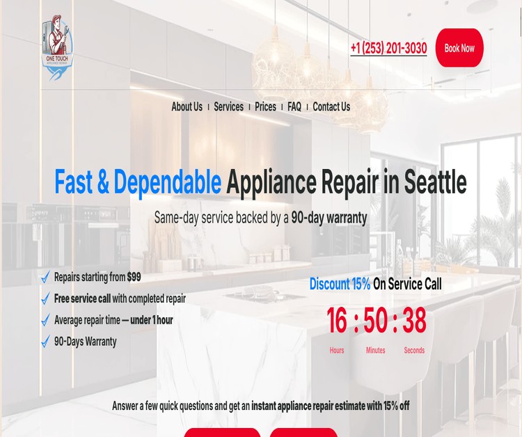 One Touch Appliance Repair is a locally operated appliance repair company providing professional service for residential customers. We repair refrigerators, washers, dryers, ovens, cooktops, ranges, dishwashers, and other major household appliances. Our technicians work with all major brands and models and focus on accurate diagnostics, reliable repairs, and honest pricing. We aim to provide fast response times and quality workmanship to help homeowners get their appliances back in working order as quickly as possible.