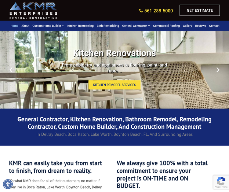 KMR specializes in taking customers from dream to reality, serving Boca Raton, Lake Worth, Boynton Beach, Delray Beach, and surrounding areas with top-notch workmanship and total commitment to delivering projects on-time and on-budget. We operate as your comprehensive construction partner, offering kitchen and bathroom remodels, general contracting, custom home building, and construction management while preserving original design concepts and providing cost savings through value engineering and ongoing subcontractor communication.