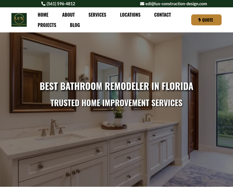 Transform your home with Lux Construction & Design, your premier bathroom remodeling contractor in Palm Beach, Riviera Beach, and Palm Beach Gardens, FL. Specializing in custom bathroom renovations, kitchen remodeling, and full home renovations, we deliver high-quality designs tailored to your vision. Our expert team ensures stunning, affordable results with superior craftsmanship. Serving South Florida, we create spa-inspired bathrooms and modern kitchens. Contact us for a free quote today! Why Choose Us: Locally trusted in Palm Beach County Custom bathroom and kitchen designs Affordable, high-quality craftsmanship