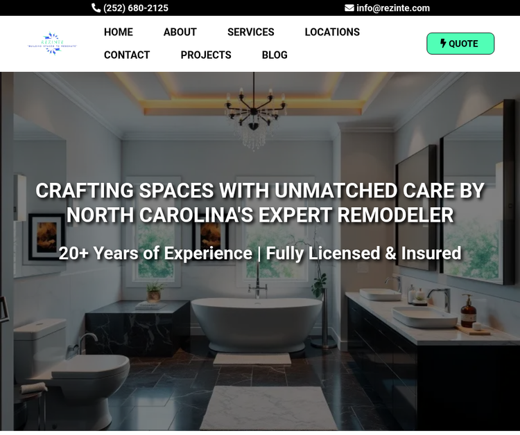 With over 26 years of experience, Rezinte is your trusted general contractor for home remodeling in Morehead City, Atlantic Beach, and Newport, NC. Specializing in kitchen remodeling, bathroom remodeling, and flooring, our locally owned team delivers exceptional craftsmanship and turnkey construction solutions tailored to your vision. Transform your home with our professional, highquality services. Call today for a free quote and start your renovation journey!