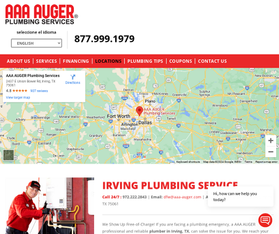 AAA AUGER Plumbing Services Irving offers reliable and professional plumbing solutions for residents and businesses in Irving. With a team of experienced technicians, transparent pricing, and 24/7 availability for emergencies, they prioritize customer satisfaction and deliver quality workmanship on every job. Whether it''s routine maintenance, repairs, or installations, AAA AUGER Plumbing Services Irving is committed to providing top-notch service you can trust.