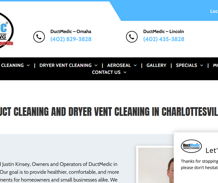 DuctMedic has been a trusted name in indoor air quality for over a decade, serving the Charlottesville community and surrounding counties with unmatched expertise and professionalism. Our Charlottesville office is located at 3410 Coffey Dr, right in the heart of the city, making it convenient for residents and local businesses to access top‑tier duct cleaning and HVAC services.