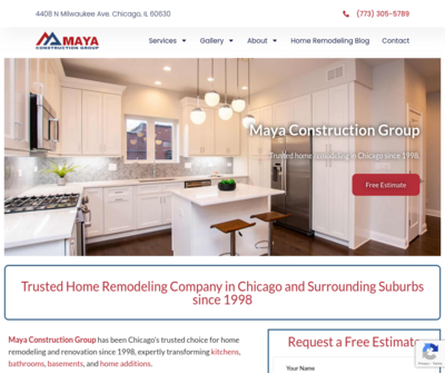 Maya Construction Group is Chicagos trusted home remodeling and construction expert. Since 1998, weve delivered quality craftsmanship and exceptional service for residential and commercial projects. Our comprehensive services include:Home Remodeling: Transform your living space with custom renovations tailored to your style and needs.Kitchen Remodeling: Upgrade with modern layouts, custom cabinetry, and high-quality finishes.Bathroom Remodeling: Create spa-like retreats with elegant tile work, sleek fixtures, and personalized designs.Basement Remodeling: Maximize your homes potential with functional, stylish basement spaces.Home Additions: Expand your home with seamless extensions like bedrooms, in-law suites, and sunrooms.Decks and Porches: Design, build, and remodel outdoor spaces for relaxation and entertaining.Home Renovations: Modernize and upgrade your entire home with expert craftsmanship.Commercial Construction and Remodeling: Build and remodel offices, retail spaces, restaurants, and more.Exterior Services: Siding installation, gutter replacement, and outdoor finishes to boost curb appeal.Custom Design and Build: From concept to completion, we handle every aspect of your project.With hundreds of 5-star reviews across Google and Yelp, were proud to be a leader in quality, reliability, and customer satisfaction. Contact us today to schedule a consultation and bring your vision to life!