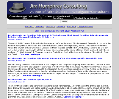 "description": "Faith Studies by Jim Humphrey is a premier resource for scholars, students, and believers seeking a deeper understanding of biblical truth. With decades of dedicated research, the organization publishes meticulous faith studies that unpack scripture verse by verse, offering fresh insights into the life of Jesus, the apostolic teachings, and the foundational doctrines of grace.