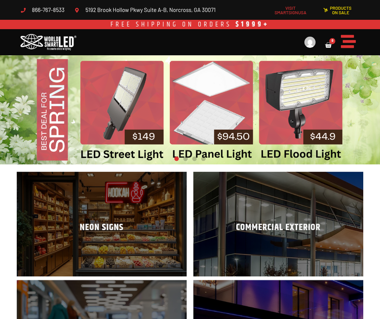 "description": "World SmartLED, Premier LED Lighting distributor delivering quality lighting solutions, nationwide, has been on a mission since 2002 to reduce global carbon dependency through energy-efficient lighting solutions. Headquartered in Norcross, Georgia, we've expanded our presence with retail outlets and customer support workshops across metro-Atlanta since 2008. We offer customizable lights and lamps, tubes, street lights, flood lights, troffer lights, UFO high bay lights, canopy lights, and panel lights. LEDs save energy, money, and offer versatile lighting options while protecting the planet. Join us on the path to a brighter, greener future.",