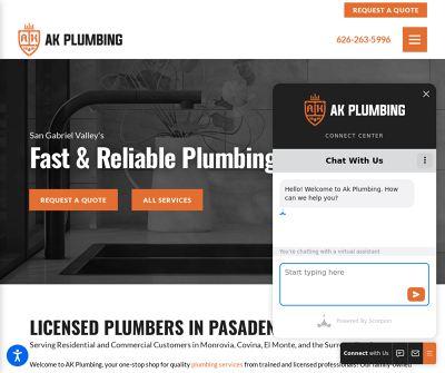 Welcome to AK Plumbing, your one-stop shop for quality plumbing services from trained and licensed professionals! We offer a full range of plumbing services, including gas line repairs, sewer line replacements, drain cleanings, and more.